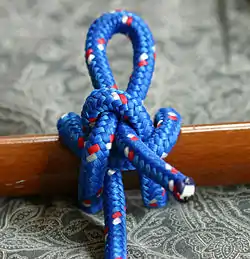- Уважно оглядати мотузку на наявність пошкоджень обплетення або внутрішніх пошкоджень, особливо перед використанням. При наявності ушкоджень — замінити мотузку або обрізати пошкоджену ділянку.