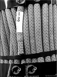 - Маркування — на кінцях мотузки вказується тип мотузки (A або B), діаметр, виготовлювач.