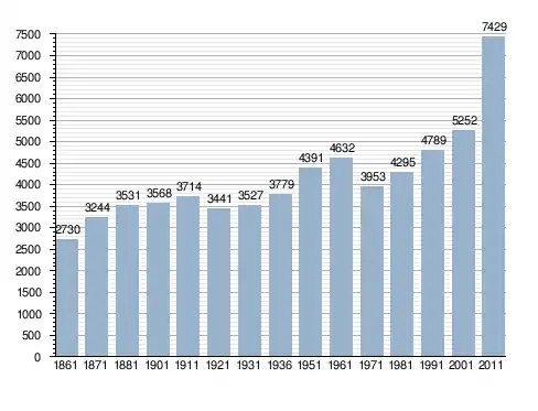 Станом на 31 грудня 2014 року в муніципалітеті офіційно проживало 158 іноземців з 24 країн, серед них 86 громадян країн Євросоюзу.[4]