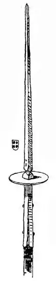 Капітан у супроводі двох охоронців з альшпісами. Зверніть увагу на незвичайно велику довжину наконечників, що перевищує довжину древка.