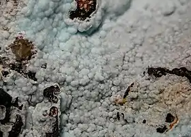 Зустрічається в крейдоподібних масах радіальноволокнистої та сферолітової будови. Рідкісний. Є в Хакасії (Сибір), де асоціює з алофаном, а також в Польщі (Нова-Руда), ФРН (Бергіш-Гладбах) і у Пакистані (Чітрал).