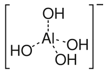 Йон [Al(ОН)4]− існує у водних розчинах. Алюмінати лужних металів добре розчиняються у воді, їх водні розчини внаслідок гідролізу стійкі лише при надлишку лугу. При стопленні Al2O3 з оксидами металів утворюються безводні алюмінати, які формально можна розглядати як похідні метаалюмінієвої кислоти HAlO2, наприклад, метаалюмінат кальцію Са(AlO2)2 може бути отриманий шляхом сплавлення Al2O3 з СаО.