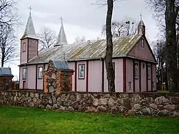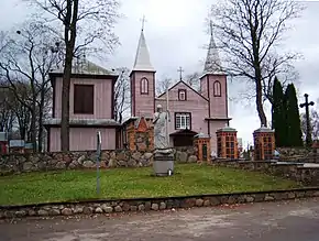 Костел святого Йонаса Хрестителя, який був збудований 1856 року. Прямокутний у плані, з двома вежами, дерев'яний.