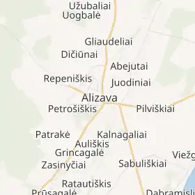 Алізава розташоване за 17 км на північ від райцентра, міста Купішкіс.