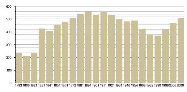 Динаміка населення (INSEE [3] і Ldh/EHESS/Cassini [4]. ):