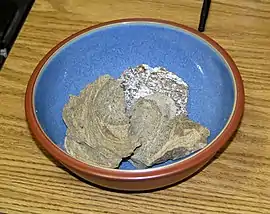 Яскраво-сіра, сіро-бура, а іноді жовто-зелена речовина з землистим запахом. Легко розм'якшується в руках, плавиться при 60 оС, не розчиняється у воді, але добре розчиняється у гарячому спирті, ефірі і оліях.