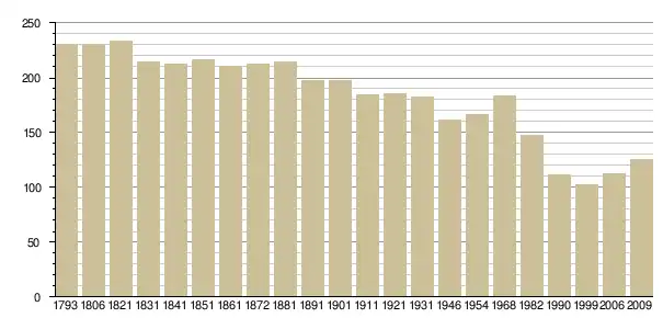 Динаміка населення (base Cassini de l'EHESS pour les nombres retenus jusque 1962[3], base Insee à partir de 1968 (population sans doubles comptes puis population municipale à partir de 2006)[4] · [5] ):