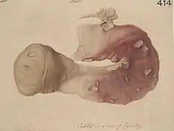 ![]() Головне ураження при амебіазі — типові великі виразки в товстій кишці. Головне ураження при амебіазі — типові великі виразки в товстій кишці. | |