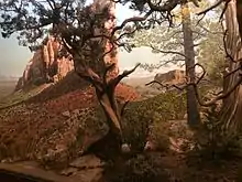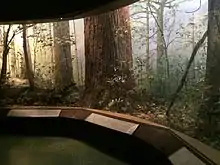 Зал північноамериканських лісів — це одноповерховий зал на першому поверсі музею, між Меморіальним залом Теодора Рузвельта та Залом Варбурґа штату Нью-Йорк. Він містить десять діорам, що зображують цілий ряд типів лісів з усієї Північної Америки, а також кілька показів щодо збереження лісів та здоров'я дерев. Побудований під керівництвом відомого ботаніка Генрі К. Свенсона (який також керував створенням Варбурзького залу) і відкритий в 1959 році, кожна діорама містить як конкретне місце розташування, так і точний час року, що зображується.[39] Дерева та рослини, представлені в діорамах, побудовані з поєднанням предметів мистецтва та фактичної кори та інших зразків, зібраних у полі. На вході в зал представлений поперечний переріз 1400-річної секвої, взятої з гаю Кінґ-Рівер на західному фланзі гір Сьєрра в 1891 році.[40]