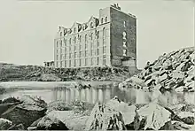 Оригінальна будівля незабаром була затьмарена південним ареалом музею, спроєктованим Дж. Клівлендом Кеди, зведеним в неороманському стилі під впливом Г. Г. Річардсона.[10] Він простягається на 210 метрів вздовж Західної 77-ї вулиці,[11] кутові вежі висотою 14 метрів (46 футів). Його рожевий бурий камінь і граніт, схожі на ті, що знайдені на острові Ґріндстоун у річці Св. Лаврентія, походять із кар'єрів на острові Піктон, штат Нью-Йорк.[12]