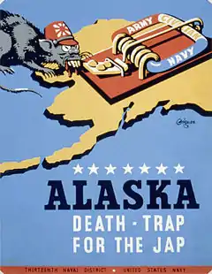 ![]() Американський пропагандистський плакат часів Алеутської кампанії. Американський пропагандистський плакат часів Алеутської кампанії. | |||||||