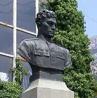 Згідно з Указом Президії Верховної Ради СРСР від 30 червня 1945 року в Алупці на батьківщині двічі Героя Радянського Союзу Амет-Хана Султана, звідки свого часу були виселені майже всі татари, мало бути встановлене його бронзове погруддя. Однак бюст славетного льотчика встановили лише у 1955 році: погруддя Героя намагалися поставити в Ярославлі, Махачкалі, Сталінграді, але ніяк не в Алупці[15]. На початку 1950-х років на прийомі у Ворошилова, останній запитав Амет-Хана, чому він відмовляється від пам'ятника на батьківщині. Той був вкрай здивований — він дійсно відмовлявся від встановлення бюста в Ярославлі та Махачкалі, але жодним чином мова не йшла про Алупку. Тоді Ворошилов показав Ахмет-Ханові Султану «лист» з відмовою, який начебто написав льотчик. Врешті усе владналося, але коли настав час відкривати пам'ятник, зник, а місце для його встановлення виявилося засадженим квітами. Минуло ще три роки, поки бюст знайшовся і був встановлений на належному місці[11]. Нині пам'ятник стоїть на бульварі Амет-Хана Султана (вул. Льотчиків, 6).