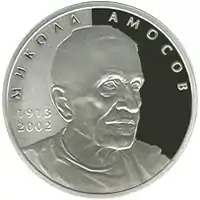 - Пам'ятні монети України — Микола Амосов // Офіційне інтернет-представництво Національного банку України — Переглянуто 18.12.2013