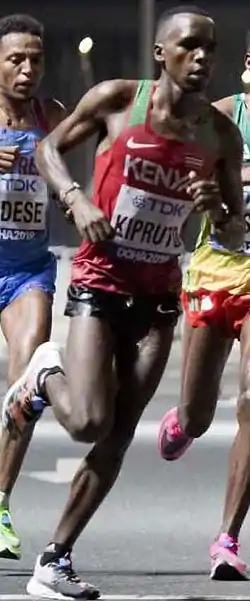 ![]() Амос Кіпруто під час забігу на чемпіонаті світу-2019 Амос Кіпруто під час забігу на чемпіонаті світу-2019 | ||||||||||||||||||