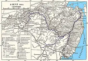 ![]() Річка Амур. У центрі — Благовєщенськ і Амурський округ | |