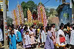 Сільська громада управляється радою старійшин під контролем муніципальної влади. Переважно ендогамна. Білатеральна розширена (6—12 чоловік) сім'я займає кілька хатин. Спадкування патрилінейне, шлюб патрилокальний з попереднім відпрацюванням за наречену і тимчасовою матрилокальністю.