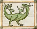 Мініатюра з Абердинського бестіарія:вгорі сціталіс, внизу амфісбена