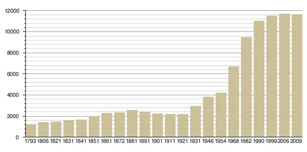 - Avant 1968 : Cassini ; depuis 1968 : recensements INSEE ; recensement INSEE 2006., наведено за французькою вікіпедією