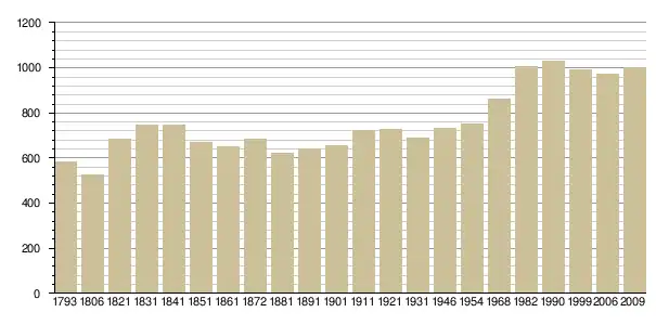 Динаміка населення (base Cassini de l'EHESS pour les nombres retenus jusque 1962[3], base Insee à partir de 1968 (population sans doubles comptes puis population municipale à partir de 2006)[4] · [5] ):
