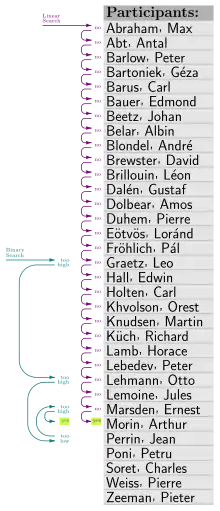 Візьмемо як приклад програму, яка шукає певний запис у відсортованому списку розміру n. Припустимо, що ця програма була реалізована на комп'ютері A, найсучаснішій машині, використовуючи лінійний алгоритм пошуку, і на комп'ютері B, набагато повільнішій машині, використовуючи алгоритм бінарного пошуку. Тестування продуктивності відповідних програм на цих двох комп'ютерах може виглядати приблизно так: