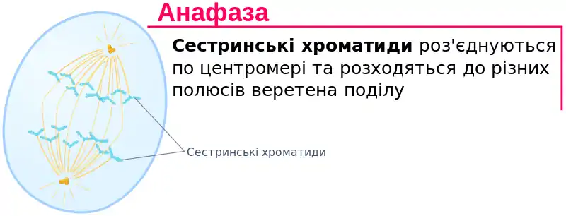 Поки хромосоми притягуються до полюсів веретена поділу за рахунок мікротрубочок та моторних протеїнів, некінетохорні мікротрубочки подовжуються і відштовхуються одна від одною, розтягуючи клітину паралельно головній осі веретена поділу та сприяючи ще більшому віддаленню хромосом.[3]