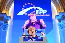 А́нґела Дороте́я Ме́ркель (нім. Angela Dorothea Merkel; нар. 17 липня 1954, Гамбург) — німецька політична діячка, Федеральний канцлер Німеччини з 2005 року до 2021 року. Очільниця Християнсько-демократичного союзу (2000—2018), лідерка опозиції від 2002 до 2005 року. Меркель є першою жінкою на посаді Федерального канцлера Німеччини; її також часто називали де-факто лідеркою Європейського Союзу і найвпливовішою жінкою у світі[7][8].