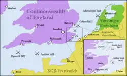 У 1648 році Республіка Об'єднаних провінцій уклала з Іспанією Мюнстерський мир, за яким Голландія була визнана як незалежна держава і зберегла контроль над територіями, завойованими на пізніх етапах війни. Але велика частина голландської армії і флоту повинні були розпущені. Але новий штатгальтер Вільгельм II Оранський відмовився це зробити, що призвело до конфлікту за патриціатом на чолі із Яном де Віттом. Раптова смерть в 1650 році послабила рід Оранських. Тим часом, Олівер Кромвель об'єднав Англію, Шотландію і Ірландію в Англійське співдружність, створив потужний флот.