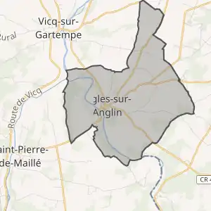 - Розташування муніципалітету Англь-сюр-л'Англен на мапі Франції та сусідні муніципалітети