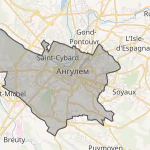 - Розташування муніципалітету Ангулем на мапі Франції та сусідні муніципалітети