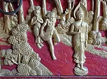 Здійснюючи безглузді вбивства і побачивши самотнього Будду в лісі, Ангулімала дістав меч і побіг за ним, але, незважаючи на те, що Будда йшов повільно, вбивця не міг його наздогнати. Розгубившись, Ангулімала закричав: «Стій!», але Будда відповів: «Я вже стою, повинен зупинитися ти». Ця розмова стала поворотним моментом у долі Ангулімали.