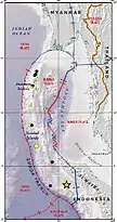 Границя між двома великими тектонічними плитами призводить до високої сейсмічної активності в регіоні. Були зареєстровані численні землетруси. З них шість, у 1797, 1833, 1861, 2004, 2005 і 2007 роках, мали магнітуду понад 8,4 бали. 26 грудня 2004 року в районі північно-західного узбережжя Суматри велика частина Індо-Австралійської літосферної плити різко занурилась під Бірманську, в результаті чого стався руйнівний землетрус із магнітудою 9,3 балів. Здвиження морського дна сягали 20 м, а підняття — 5 м[22]. Такі різкі колосальні рухи морського дна спричинили катастрофічне цунамі висотою до 28 м в акваторії Індійського й прилеглих частин Тихого океану, в результаті якого загинуло приблизно 280 тис. людей[23][24]. Масова загибель людей була викликана повною відсутністю інфраструктури попередження від великих хвиль у прилеглих до епіцентру держав. Після головного поштовху слідувала масована серія афтершоків дугою Андаманських і Нікобарських островів, що повністю зруйнувала риболовецьку інфраструктуру на них[8].