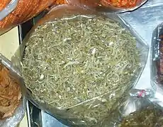 - анчоус (Stolephorus spp.) — 19 %, індо-тихоокеанська скумбрія (Rastrelliger brachysoma) — 18 %, сардинелла (Sardinella spp.) — 14 %, ставрида (Decapterus) — 11 %, довгохвостий тунець (Thunnus tonggol) — 9 %, малий східний тунець (Euthynnus affinis) — 6 %, ставрида великоока (Selar crumenophthalmus) — 5 %, інші різні ставридові (Carangidae) — 6 %, індійська макрель (Rastrelliger kanagurta) — 4 %, королівська макрель (Scomberomorus cavalla) — 3 %, ставрида скумбревида (Megalaspis cordyla) — 2 %, дорабові (Chirocentridae) — 1 %, інші — 2 %.