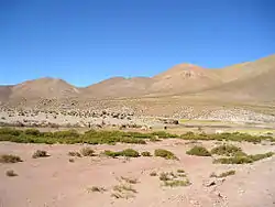 Південніше, в субтропічних чилійських Андах — вічнозелені чагарники на коричневих ґрунтах. У Подовжній долині — ґрунти, що за складом нагадують чорнозем. Рослинність високогірних плато: на півночі — екваторіальні альпійські луги або парамос, в Перуанських Андах і на сході Пуни — сухі високогірно-тропічні степи халка, на заході Пуни і на всьому тихоокеанському заході між 5—28° південної широти — пустельні типи рослинності (у пустелі Атакама — сукулентна рослинність, включаючи кактуси). Багато поверхонь засолені, що перешкоджає розвитку рослинності; на таких ділянках зустрічаються в основному полин і ефедра.