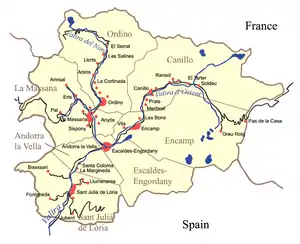 Андорра в адміністративному плані розділена на 7 паррокій (кат. parròquies, «громада») :