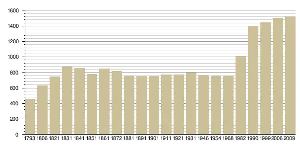 Динаміка населення (base Cassini de l'EHESS pour les nombres retenus jusque 1962[3], base Insee à partir de 1968 (population sans doubles comptes puis population municipale à partir de 2006)[4] · [5] ):