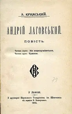 - Кримський А. Андрій Лаговський / Агатангел Кримський. – Київ: Національний книжковий проект, 2011. – 336 с.: іл.