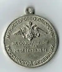 З нагоди анексії Криму Росією прокотилася хвиля урочистих заходів, була запроваджена медаль Міністерства оборони Росії «За возвращение Крыма»[91].