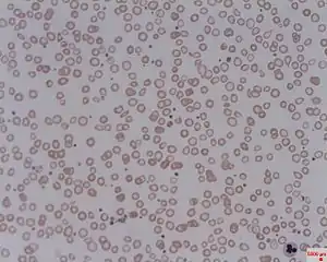![]() Вигляд еритроцитів при залізодефіцитній анемії Вигляд еритроцитів при залізодефіцитній анемії | |