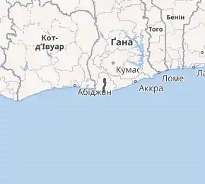 | 4°53′53″ пн. ш. 2°16′07″ зх. д. | |