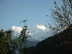 ![]() Аннапурна IV (ліворуч), Аннапурна II (в центрі) та Ламжунг-Гімал (праворуч). Вид з південного сходу. | ||||