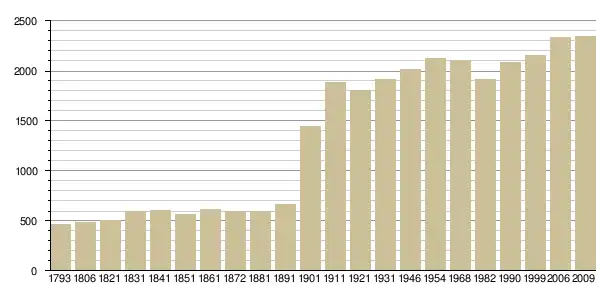Динаміка населення (base Cassini de l'EHESS pour les nombres retenus jusque 1962[3], base Insee à partir de 1968 (population sans doubles comptes puis population municipale à partir de 2006)[4] · [5] ):