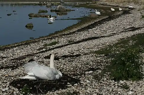 Також на острові гніздяться: баклан великий, лебідь-шипун, мартин сріблястий, чорноволик, пісочник, турухтан, грицик великий, травник, крем'яшник звичайний, крячок річковий, крячок малий, крячок полярний, сова болотяна, сорокопуд терновий та кропив'янка рябогруда.