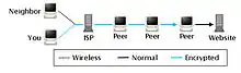 У децентралізованої мережі будь-яка машина може встановити з'єднання з іншою, а також надіслати їй запит на надання ресурсів. Кожна машина обробляє запити від інших як сервер, посилаючи і беручи запити, а також виконуючи інші допоміжні та адміністративні функції. Будь-який учасник такої мережі незобов'язаний гарантувати постійного з'єднання і може розірвати його в будь-який момент часу. Але при досягненні певного розміру мережі в ній одночасно починають існувати безліч серверів з однаковими функціями. ANts P2P ANts P2P [1] - файлообмінна мережа, анонімізіруюча весь потік даних, використовуючи систему маршрутизації, в якій, на відміну від BitTorrent, учасники обмінюються трафіком не безпосередньо, а через декілька вузлів. Кожному учаснику відомий тільки IP-адресу його безпосереднього сусіда. Таким чином, відправник не знає, куди йде його файл, а одержувач не знає, звідки він прийшов. Для більшої безпеки дані між окремими відправниками та одержувачами шифруються симетричним алгоритмом AES.