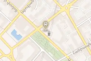 Станція розташована в центрі Єревана, в районі Кентрон (дослівний перклад «Центр») із виходом на площу Республіки, до будівлі Уряду Вірменії, Державної картинної галереї Вірменії, Національного історичного музею Вірменії, співаючих фонтанів та Вернісажу.