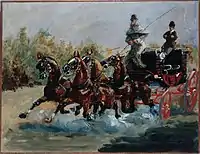 Grafo Alphonse de Toulouse-Lautrec kocxerumas kvar cxevalojn (1881)