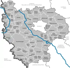Район складається з 12 міст (нім. Städte), 13 торговельних громад (нім. Märkte) та 33 громад (нім. Gemeinden):