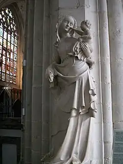 - Мадонна з немовлям з каррарського мармуру (1,27 м заввишки). Це анонімна робота відома як чудовий зразок готичної скульптури XIV століття і зокрема школи Мез (Маас). Походження цієї статуї пов'язане з «Майстернею Мармурових Мадонн провінції Маас», яка спеціалізувалася на виготовленні таких мармурових статуй і розташовувалася в 1350 на околицях Льєжа (приблизно в той час вона і була виготовлена). Статуя була встановлена в соборі в 1866.