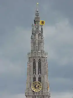 На початку XVI століття будівництво Антверпенського собору, нарешті, було закінчено, і його величний силует з химерною вежею в стилі полум'яніючої готики запанував над містом. Дивовижний дзвін сорока дзвонів Антверпенського собору і його висота вражали сучасників. Свого часу Карл V, імператор Священної Римської імперії, дивувався пишністю шпиля собору. Наполеон порівнював шпиль собору з брабантським мереживом.