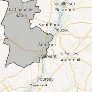 Муніципалітет розташований на відстані[2] близько 390 км на південний захід від Парижа, 90 км на південний захід від Пуатьє, 60 км на схід від Ла-Рошель.