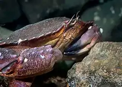 Червоний скелястий краб Cancer productus, що мешкає вздовж західного узбережжя Північної Америки, є, подібно іншим крабам, володарем коротесеньких і тонесеньких антен |